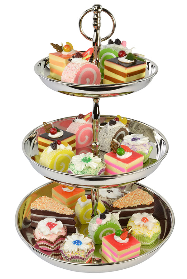 These delicious-looking decorated mousse cake squares would fit perfectly in any replica cake or patisserie style display scene. In the photo above, we've displayed a few on our metal etagere, along with some of our other artificial cakes (all available separately). The pack contains six different colour replica cake squares, each with a realistic fruit and chocolate topping.