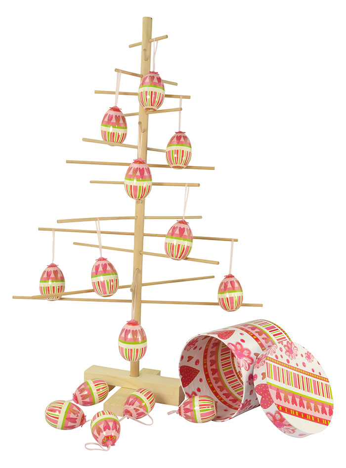 These cute and colourful decorative eggs are perfect display items for Easter and spring. Each plastic egg is complete with a fabric hanging loop which makes them easy to display, as shown. There are 14 motif eggs in the pack, contained in a matching decorative box. Please note that the wooden tree shown is for demonstration purposes only and is not supplied with the eggs.