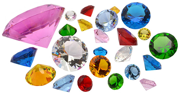 As you can see in the photo above, our crystal glass gems are available in a wide range of colours and sizes, so you'll find one suitable for every occasion or colour theme. The K9 grade optical glass gives you the very best light refraction, amplifying the delicate colours in the lighter gems and seemingly causing the deeper coloured gems to glow from within.