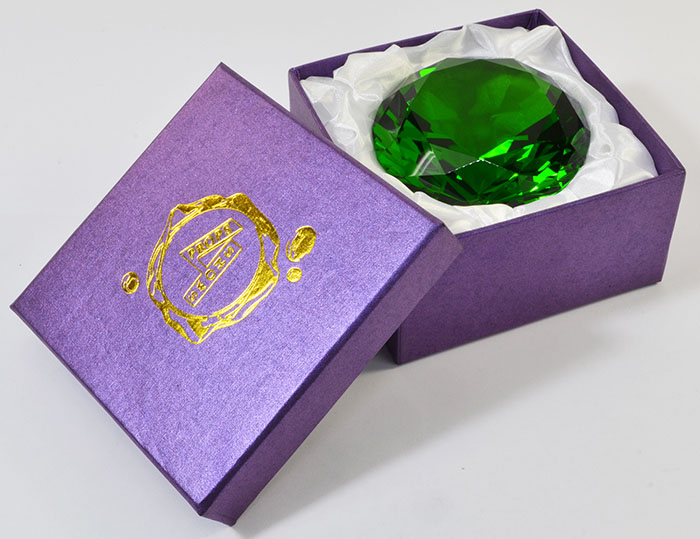 This gorgeous green replica emerald would make a fantastic gift. It comes presented in an attractive satin lined box and could be used as an ornament, keepsake or paperweight. Emeralds are used to celebrate 20th and 55th wedding anniversaries, as well as being the birthstone for May birthdays. The gem would certainly be a welcome gift to both children and adults alike. It would also make a brilliant display item for commercial display use, such as stage and theatre use or as part of attractive jewellery window displays.