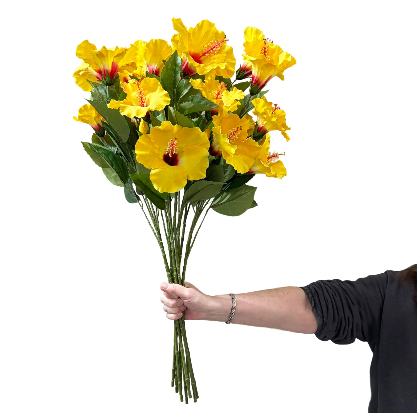 A Vibrant Bunch of 10 Large Replica artificial Fake Yellow Hibiscus Flowers