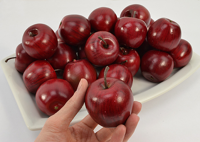 This pack of 24 lovely rosy red apples make a very attractive display. Realistically finished with great attention to details, these fake apples would definitely be mistaken as the real thing. They are just 5cm in diameter and reasonably lightweight, so are also ideal for using in craft and costume applications.