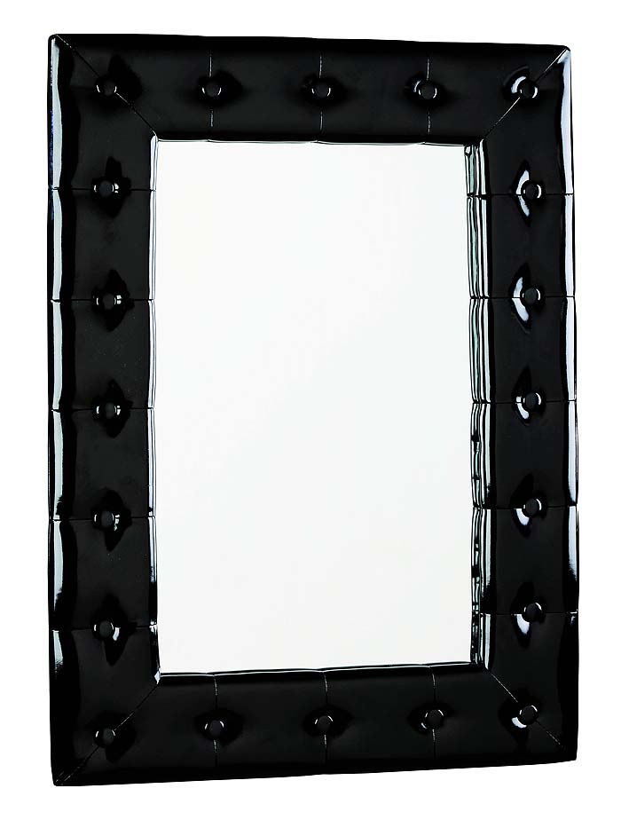 Really nice display piece with a practical use. This mirror has a soft black padded frame, finished with studs.