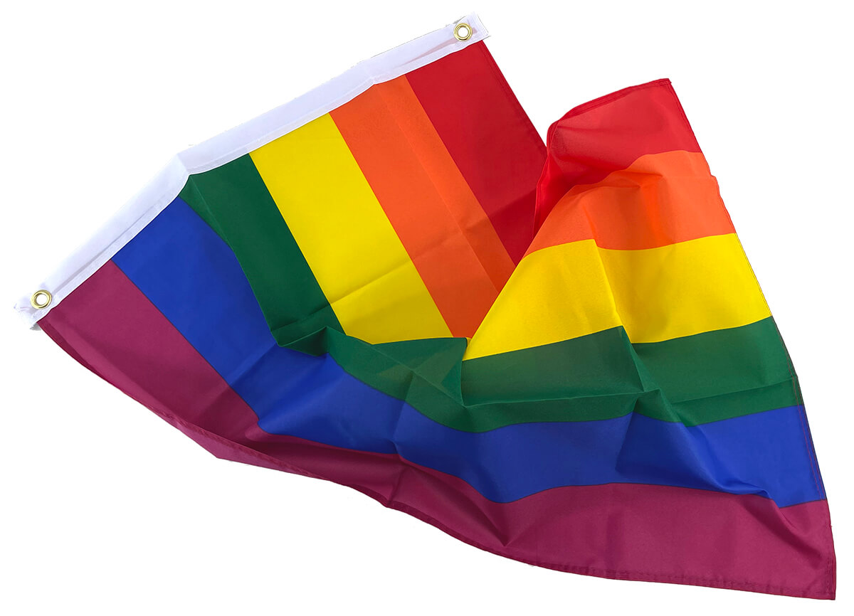 Gay pride rainbow style flag, 90 x 60 cm. Wonderfully colourful and made from a high quality polyester material.