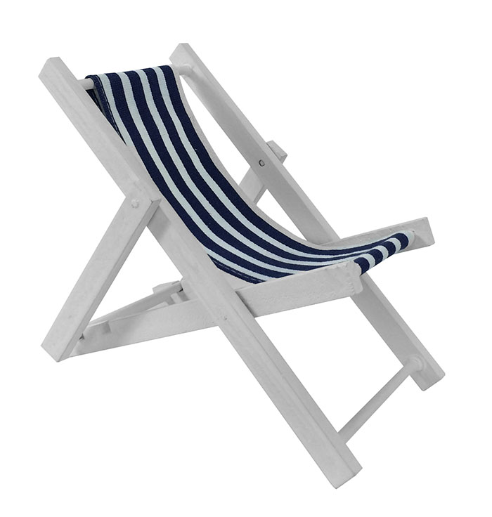 Mini blue and white deckchair to match our nautical range. Would look great in a seaside or nautical display, but could also be used to hold your favourite cuddly toy, even your mobile phone! *Not included*